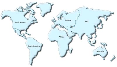 In the above example, we've hidden the label of North America by setting its displayValue attrbute to a blank space. When you view this map, you'll get the following results: |