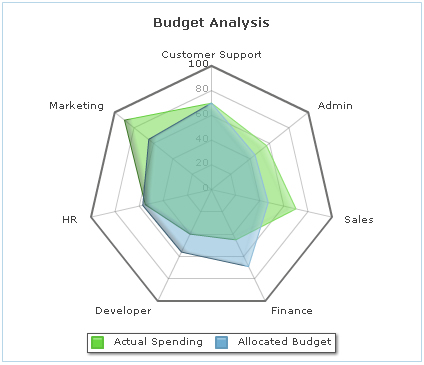 <chart caption='Budget Analysis' bgcolor='FFFFFF' anchoralpha='0' basefontcolor='3E3E3F' bordercolor='6FACD1' captionpadding='20' radarFillColor='FFFFFF' >
